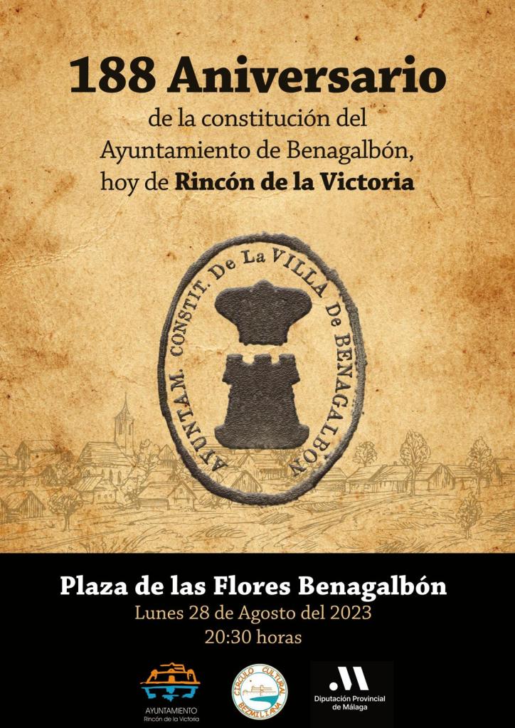 Círculo Cultural Bezmiliana junto al Ayuntamiento de Rincón de la Victoria celebrará, en colaboración con la Diputación provincial de Málaga, una serie de actos conmemorativos con motivo del 188 aniversario de la constitución del primer ayuntamiento del municipio en la villa de Benagalbón.